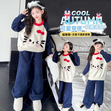 1*8下载视频“24195刺绣小猫咪加厚保暖睡衣套”