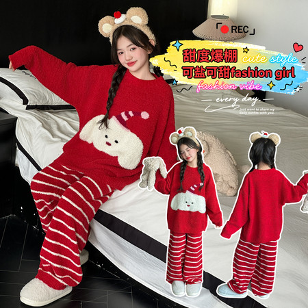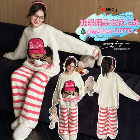 1*7收藏“25237可爱表情蝴蝶结半边绒加厚睡衣”