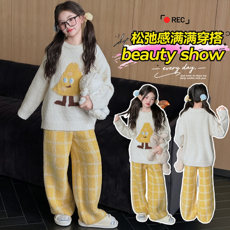 1*7收藏“25237可爱表情蝴蝶结半边绒加厚睡衣”