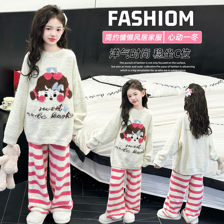 1*9收藏“25268细条双面绒400克加厚睡衣套装”