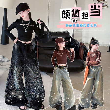 1*3收藏“2611美式上衣满眼星河全钻牛仔裤套装”
