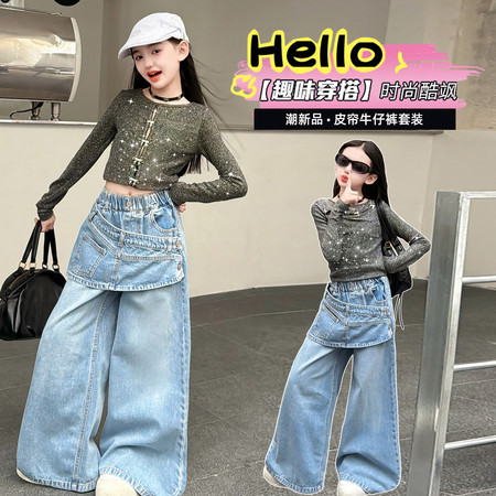 y*1下载“2614牛仔拼接爱心上衣珍珠连钻牛仔裤”图片包